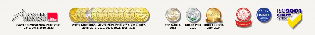Od początku swej działalności największym priorytetem była jakość oferowanych produktów. Tylko w ten sposób możliwe było osiągnięcie pełnego zadowolenia Klientów oraz wiodącej pozycji na rynku. Zostało to poparte licznymi nagrodami, m.in. Złotym Medalem Międzynarodowych Targów Poznańskich, Srebrnym Asem dla najlepszych polskich przedsiębiorstw i inwestorów, Brązowym, Srebrnym oraz Złotym Kaskiem Polskiej Izby Przemysłowo Handlowej a także wielokrotnie Złotym Laurem Konsumenta.